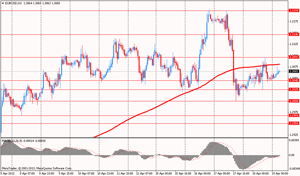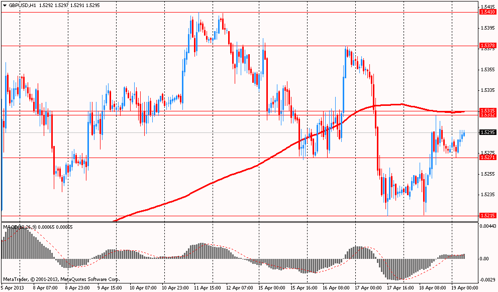 Спрос на доллар упал после выхода вчерашней негативной статистики. Согласно отчету, который был опубликован Федеральным резервным банком Филадельфии, деловая активность среди производителей региона Филадельфия снизилась в этом месяце, но все же осталась на территории расширения. Данные показали, что значение производственного индекса ФРБ Филадельфии снизилось в апреле месяце до уровня 1,3, по сравнению с февральским показателем на отметке 2,0. Заметим, что такое падение оказалось большей неожиданностью для многих экономистов, так как согласно их средним прогнозам, данный показатель должен был подняться до уровня 3,1. Напомним, что 5 апреля отчет Министерства труда зафиксировал неожиданное замедление роста занятости в прошлом месяце. Все эти негативные данные могут заставить ФРС продлить программу стимулирования экономики путем ежемесячного выкупа гособлигаций и ипотечных бумаг на сумму $ 85 млрд еще на неопределенный срок.