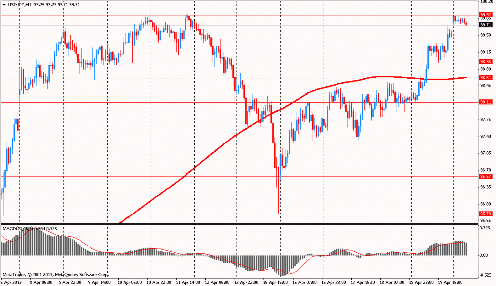 Иена ослабла и приблизилась к уровню 100 иен за доллар, после того как представители G20 не стали критиковать сверх мягкие действия денежно-кредитной политики Банка Японии. Более того, глава ЦБ Харухико Курода уже намекнул о расширении монетарных стимулов на втором заседании под его руководством, которое состоится на этой неделе.