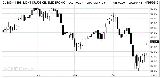 Стоимость июньских фьючерсов на американскую легкую нефть марки WTI (Light Sweet Crude Oil) выросла до 92,07 доллара за баррель, самого низкого внутридневного уровня с 19 декабря.