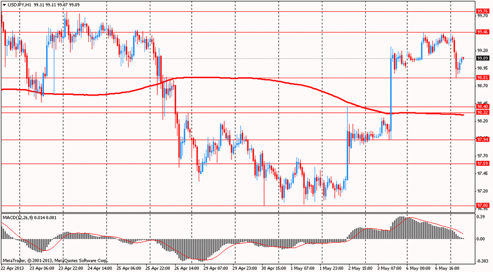 Доллар упал против японской валюты не сумев дотянуться к уровню Y100 за доллар, после трехдневного роста вызванного лучше, чем ожидалось, данными занятости в США. Иена достигла уровня Y99.45 за доллар, после того как 3 мая Департамент труда США показал, что по итогам прошлого месяца число занятых в несельскохозяйственных отраслях экономики заметно выросло, а уровень безработицы снова снизился, что все больше указывает на устойчивый экономический рост. Согласно отчету, в апреле работодатели добавили 165 000 рабочих мест, по сравнению с показателем за предыдущий месяц на уровне 138 тыс. Заметим, что согласно средним прогнозам экспертов, число рабочих мест должно было подняться на 140 тыс. Между тем, стало известно, что уровень безработицы упал на 0,1% до 7,5%, поскольку больше людей нашли работу. Это был самый низкий уровень безработицы с декабря 2008 года.