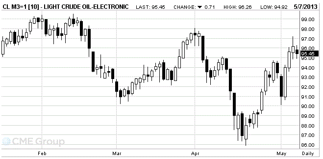 Стоимость июньских фьючерсов на американскую легкую нефть марки WTI (Light Sweet Crude Oil) снизилась до 95,45 доллара за баррель, самого низкого внутридневного уровня с 19 декабря.