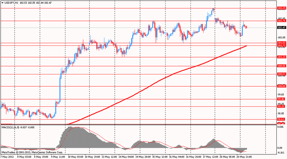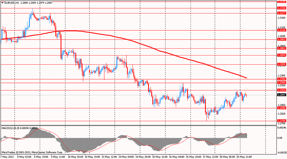 Доллар продолжает нести потери против евро в ожидании завтрашнего выступления председателя Федеральной резервной системы Бена Бернанке в Конгрессе и других официальных должностных лиц центрального банка США. Например, сегодня выступят с речью глава ФРБ Сент-Луиса Джеймс Буллард и Нью-Йорке представитель ФРС Уильям Дадли. Напомним, что 17 апреля Буллард отметил, что инфляция в стране упала намного ниже 2% целевого уровня инфляции, что может заставить ФедРезерв в дальнейшем увеличивать объем покупки активов.