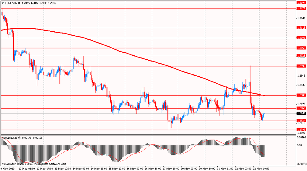 Напомним, что вчера доллар укрепился по отношению к большинству основных валют после заявления главы ФРС Бена Бернанке, который отметил, что экономика США остается под давлением высокой безработицы и сокращения госрасходов, и слишком раннее ужесточение политики поставить под угрозу ее рост. Таким образом, из заявления главы регулятора можно сделать вывод, что ФРС не рассматривает возможность сокращения денежных вливаний в экономику через так называемую программу количественного смягчения (QE).