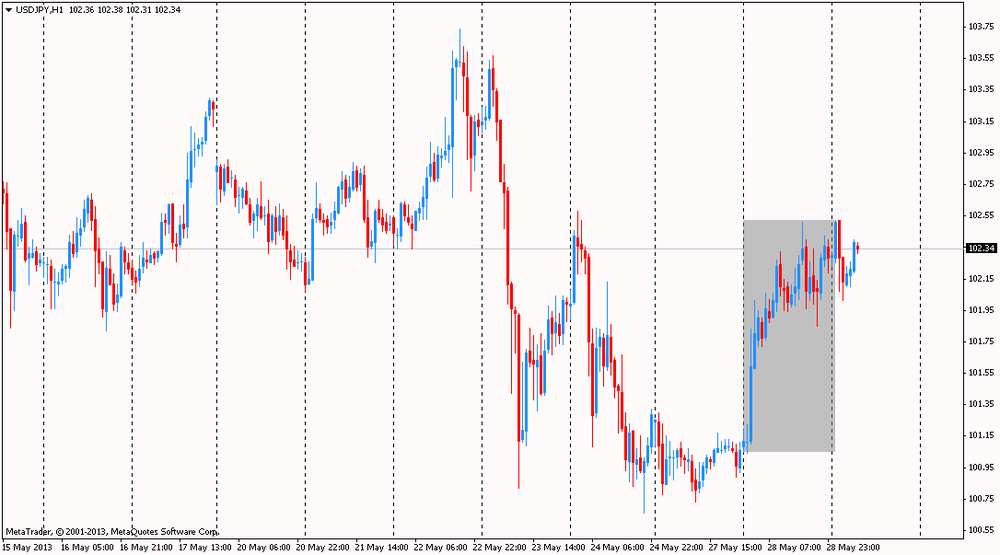 Кроме того, на динамику торгов показали результаты последнего исследования, которые были представлены сегодня Shoko Chukin Bank. Как стало известно, уровень делового доверия для малых и средних предприятий Японии ухудшился в мае, зафиксировав при этом второе месячное снижение подряд. Согласно отчету, в текущем месяце индекс настроений в деловых кругах упал до уровня 48,2, по сравнению с 49,4 и 49,7 в марте. Напомним, что значение индекса ниже уровня 50 указывает сокращение активности, в то время как рост выше данного уровня предполагает расширение. Между тем, стало известно, что ухудшение настроений отражает негативную оценку условий ведения бизнеса в непроизводственной сфере. Соответствующий показатель снизился до уровня 49, по сравнению с 51,1 в предыдущем месяце. Между тем, степень уверенности в производственном секторе осталась без изменений - на уровне 47,2. Стоит отметить, что предприниматели малого промышленного сектора ожидают, что уровень общих настроений, как в производстве, так и в непроизводственной сфере, зафиксирует рост в ближайший месяц.