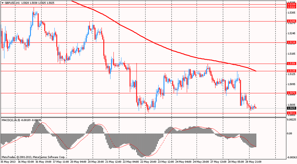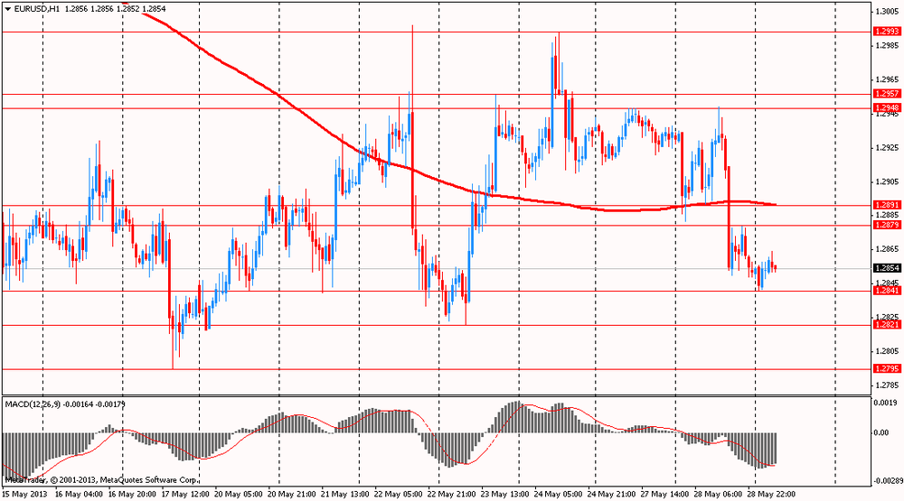Индекс доллара вырос второй день подряд в ожидании выхода пересмотренных данных об изменении объема ВВП США в первом квартале 2013 года. Согласно среднему прогнозу экономистов завтрашний отчет от министерства торговли США может подтвердить рост экономики в январе-марте на 2,5%. "Доллар силен. Экономика США восстанавливается устойчивыми темпами, и сокращение денежно-кредитных стимулов, по-видимому, уже не за горами", - заявил старший управляющий директор FX Prime Corp. Марито Уэда. Стоит отметить, что росту доллара способствуют ожидания инвесторов, что восстановление макроэкономических показателей побудит Федеральный резерв сократить объемы выкупа активов с текущих $85 млрд в месяц.