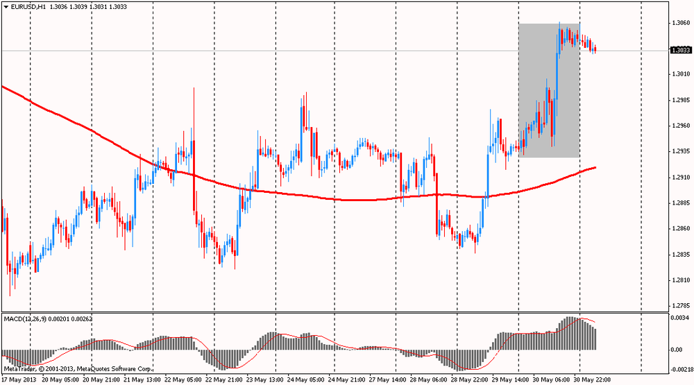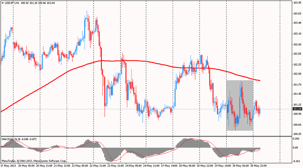 Доллар упал до трехнедельного минимума против евро после того, как опубликованная макроэкономическая статистика США возродила надежды на продление ультрамягкой монетарной политики. Как стало известно, рост ВВП по итогам первого квартала был пересмотрен в сторону понижения до 2,4%, хотя ожидалось, что показатель останется без изменения и составит 2,5%. Далее, количество первичных обращений за пособиями по безработице на минувшей неделе увеличилось с пересмотренных 344 тыс до 354 тыс и превысило ожидания - неспособность этого показателя стабилизироваться хотя бы у отметки в 300 тыс не позволяет рассчитывать на адекватное сокращение безработицы, и в этой связи на американском рынке поднялась волна надежд на продолжение QE в обозримом будущем.