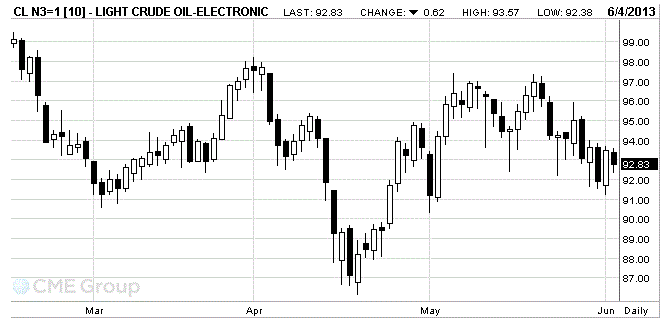 Стоимость июльских фьючерсов на американскую легкую нефть марки WTI (Light Sweet Crude Oil) упала до 92,83 доллара за баррель на Нью-Йоркской товарной бирже.
