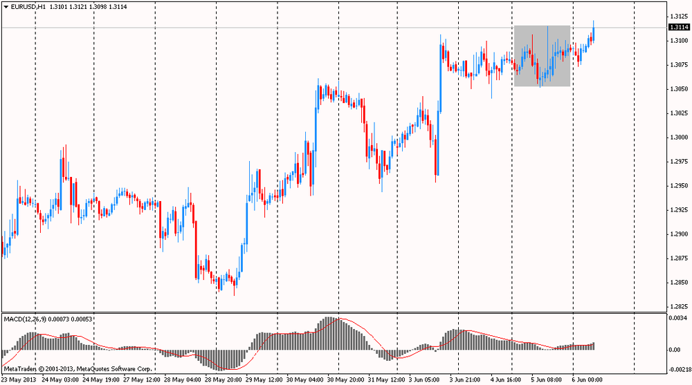 Курс евро вырос против доллара, восстановившись с минимальных значений сессии, после того, как данные от Automatic Data Processing, Inc (ADP) показали, что в мае уровень занятости в частном секторе вырос на 135 тыс. против прогноза 171 тыс. и 113 тыс. (пересмотрено от 119 тыс.) в апреле. По данным ADP, занятость в фирмах с количеством сотрудников от 1 до 49 увеличилась на 58 тыс. рабочих мест в мае. Средний бизнес с количеством 50-499 работников привлек 39 тыс. новых сотрудников. Крупные фирмы и предприятия с 500 и более работниками добавили 39 тыс. новых рабочих мест. Занятость в сфере услуг увеличилась на 138 тыс. в мае, а занятость в сфере производства вновь упала, на этот раз на 6 тыс. позиций.