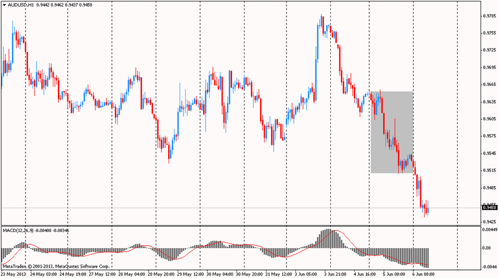 Австралийский доллар упал после выхода худшей за последние два года статистики по ВВП страны. Как показали данные, которые были представлены Австралийским бюро статистики, по итогам первого квартала экономика страны выросла, но недостаточно, чтобы подтвердить оценки экспертов. Согласно отчету, с учетом сезонных колебаний валовой внутренний продукт Австралии вырос в первом квартале на 0,6 процента по сравнению с предыдущими тремя месяцами, что оказалось ниже средних прогнозов аналитиков на уровне 0,8 процента увеличения, после 0,6 процента роста в четвертом квартале 2012 года. Кроме того, данные показали, что объем торговли вырос на 2,7 процента, а реальный валовой внутренний доход увеличился на 1,1 процента.