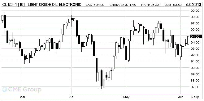 Стоимость июльских фьючерсов на американскую легкую нефть марки WTI (Light Sweet Crude Oil) выросла до 94,90 доллара за баррель на Нью-Йоркской товарной бирже.