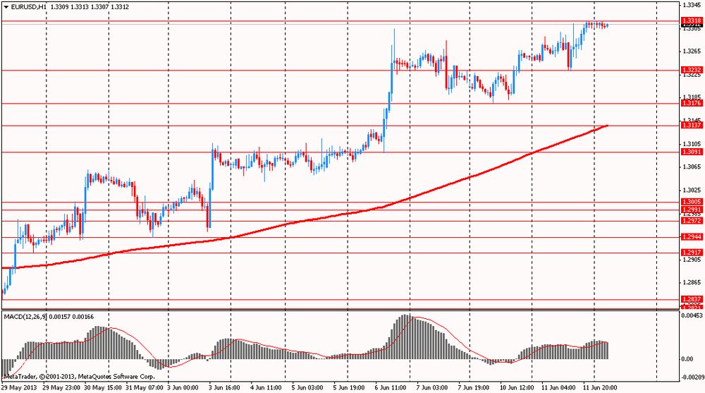 Евро торговался около более чем трехлетнего максимума в ожидании выступления члена исполнительного совета Европейского центрального банка Бенуа Керре. Ожидается, что сегодня в Берлине чиновник будет говорить о целесообразности снижения процентных ставок в евро регионе. В своей речи 10 июня Керре подчеркнул, что у монетарных властей Европы есть возможность обеспечить дополнительные стимулы, чтобы помочь экономике евро-блока вырасти. Напомним, что 6 июня управляющий совет ЕЦБ принял решение оставить основную ставку рефинансирования на уровне 0,5%, после сокращения ее на четверть пункта в прошлом месяце.