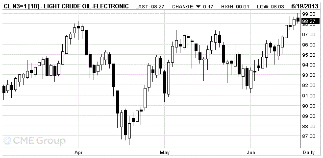 Стоимость июльских фьючерсов на американскую легкую нефть марки WTI (Light Sweet Crude Oil) упала до 98,27 доллара за баррель на Нью-Йоркской товарной бирже.