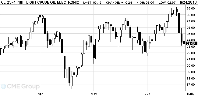Стоимость июльских фьючерсов на американскую легкую нефть марки WTI (Light Sweet Crude Oil) упала до 92,67 доллара за баррель на Нью-Йоркской товарной бирже.