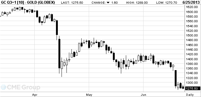 Банк HSBC в понедельник снизил прогнозы цен на золото в 2013-2014 годах с учетом намерения ФРС сократить объем скупки облигаций и слабых перспектив экономического роста Китая. Банк Credit Suisse также снизил прогнозы во вторник.