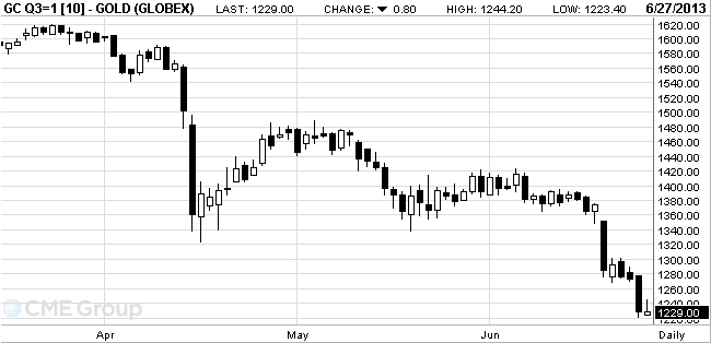 С начала года золото подешевело более чем на 26 процентов, а второй квартал может стать для рынка худшим с 1968 года, за счет роста котировок акций и курса доллара. Банк ABN Amro вслед за другими банками снизил прогноз цены золота на конец 2013 года до $1.100 за унцию с $1.300, а прогноз на конец 2014 года - до $900 с $1.000.