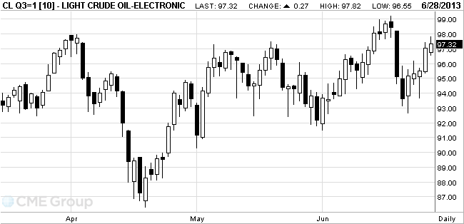 Стоимость августовских фьючерсов на американскую легкую нефть марки WTI (Light Sweet Crude Oil) выросла до 97,82 доллара за баррель на Нью-Йоркской товарной бирже.