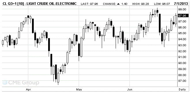 Стоимость августовских фьючерсов на американскую легкую нефть марки WTI (Light Sweet Crude Oil) выросла до 97,96 доллара за баррель на Нью-Йоркской товарной бирже.
