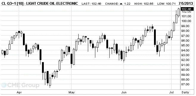 Стоимость августовских фьючерсов на американскую легкую нефть марки WTI (Light Sweet Crude Oil) выросла до 102,46 доллара за баррель на Нью-Йоркской товарной бирже.