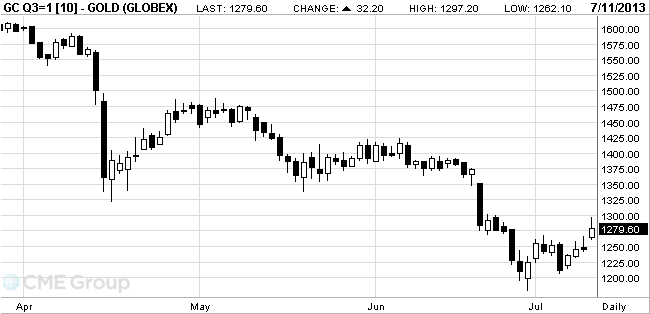 Стоимость августовского фьючерса на золото на COMEX выросла сегодня до уровня $1297.20 за унцию.