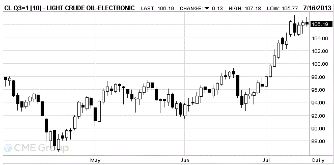 Стоимость августовских фьючерсов на американскую легкую нефть марки WTI (Light Sweet Crude Oil) снизилась до 106,19 доллара за баррель на Нью-Йоркской товарной бирже.