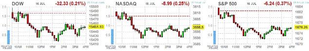 Основные фондовые индексы США отступили от своих исторических максимумов на фоне ожиданий полугодового отчета председателя ФРС Бена Бернанке.