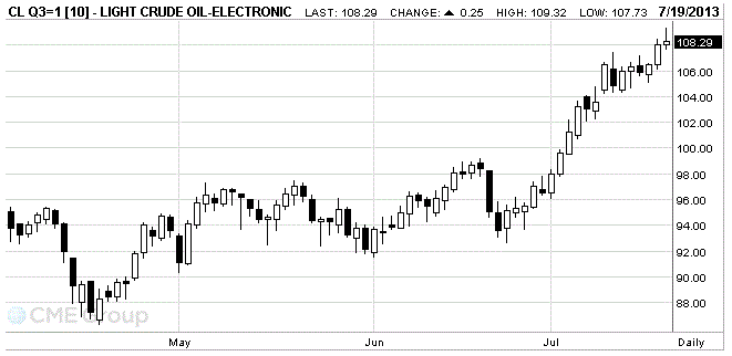 Стоимость августовских фьючерсов на американскую легкую нефть марки WTI (Light Sweet Crude Oil) выросла до 108,29 доллара за баррель на Нью-Йоркской товарной бирже.