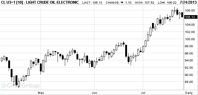 Цена сентябрьских фьючерсов на североморскую нефтяную смесь марки Brent упала на 83 цента, или на 0,8 процента, до $ 107,59 за баррель на лондонской бирже ICE Futures Europe.
