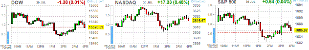 Основные фондовые индексы США отступили от сессионных максимумов, но, все-таки, закрылись на положительной территории, кроме DOW.