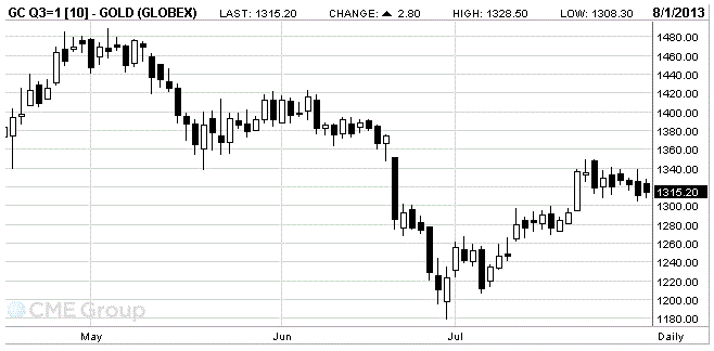Стоимость августовского фьючерса на золото на COMEX сегодня упала до $1315.20 за унцию.