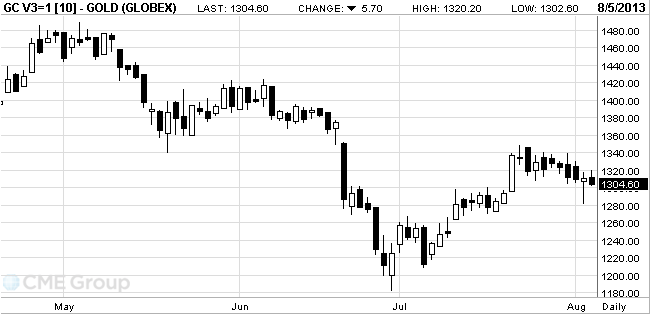 Стоимость октябрьского фьючерса на золото на COMEX сегодня снизилась до $1301.70 за унцию.