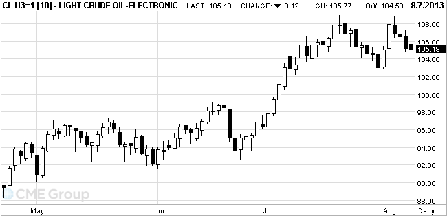 Стоимость сентябрьских фьючерсов на американскую легкую нефть марки WTI (Light Sweet Crude Oil) упала до 104,58 доллара за баррель на Нью-Йоркской товарной бирже.