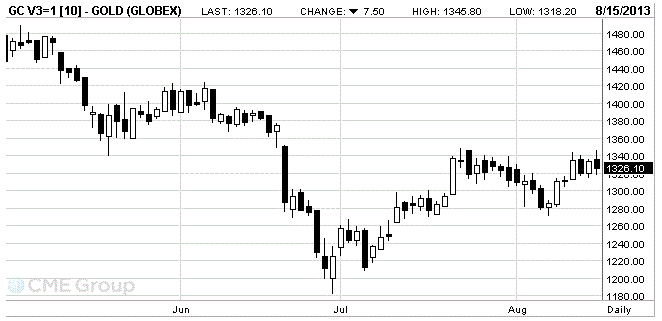 Стоимость октябрьского фьючерса на золото на COMEX сегодня снизилась до $1326.10 за унцию.