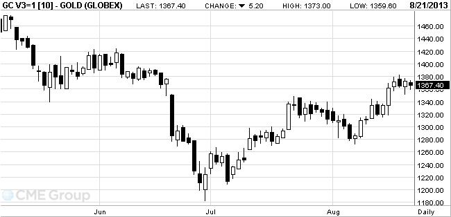 Стоимость октябрьского фьючерса на золото на COMEX сегодня снизилась до $1359.60 за унцию.