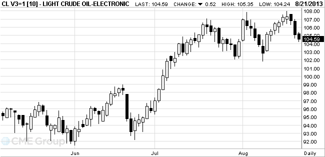 Стоимость октябрьских фьючерсов на американскую легкую нефть марки WTI (Light Sweet Crude Oil) упала до $104,24 за баррель на Нью-Йоркской товарной бирже.