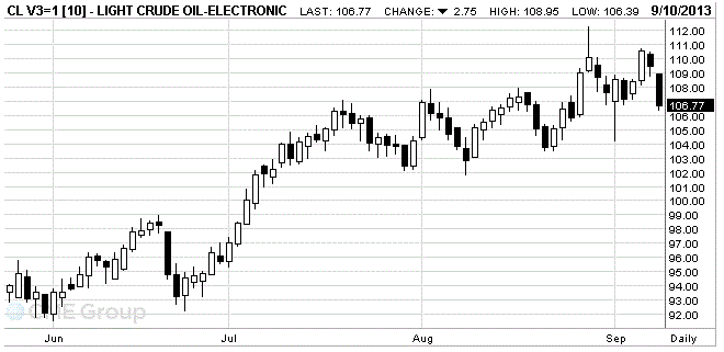 Отметим, что снижение цен на нефть началась еще в понедельник после того, как Россия поддержала комментарий госсекретаря США Джона Керри, который заявил, что военный удар может быть предотвращен, если президент Сирии Башар аль-Асад передаст химическое оружие. Уже сегодня стало известно, что Сирия согласилась с данным предложением. На фоне этого решения снизились опасения, что возможные военные действия в Сирии могут перекинуться на соседние страны Ближнего Востока и привести к сбоям в поставках регионе, который производит примерно треть добываемой в мире нефти.