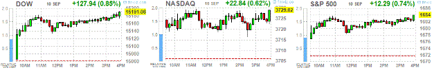 Индексы демонстрировали уверенный рост благодаря сильным данным по Китайской экономике, снижению опасений относительно военного вмешательства США в сирийский конфликт и американским данным, которые добавили шансов на сохранение объема программы количественного смягчения на неизменном уровне.