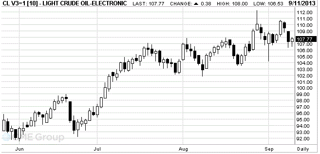 Перспектива неизбежного нападения на Сирию добавили премии за риск примерно на $ 5, что способствовало росту цен на нефть марки Brent выше $ 117 в прошлом месяце, но рынок почти вернулся к уровням, которые отмечались до этого.