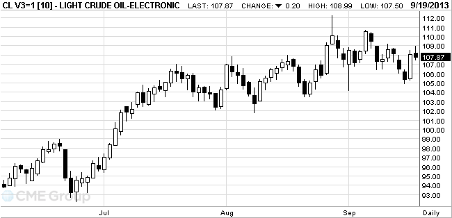 Стоимость нефти WTI подскочила на 2,5 процента вчера после того, как Федеральная резервная система оставила без изменения программу ежемесячных покупок облигаций для стимулирования экономического роста.
