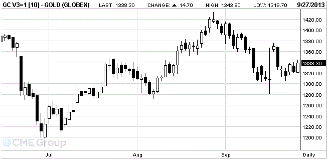 Цены на золото заметно выросли, прибавив при этом более чем на 1 процент, так как споры о бюджете США и опасения в отношении перспектив политики Федеральной резервной увеличили покупательский интерес. Напомним, что Конгресс должен достичь соглашения по федеральному бюджету к следующему понедельнику, иначе правительство прекратит работу. Отдельное соглашение о повышении потолка государственного долга должно быть принято к середине октября, иначе Министерство финансов может оказаться перед необходимостью объявления дефолта по государственному долгу.