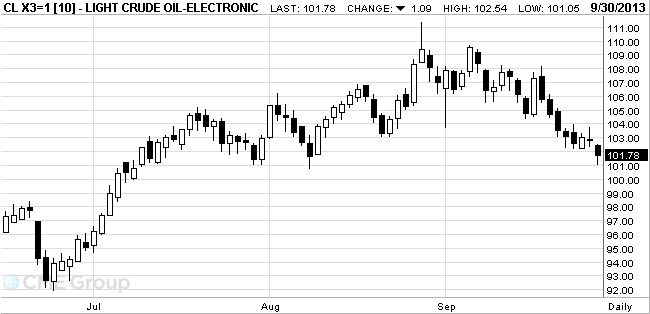 Стоимость ноябрьских фьючерсов на американскую легкую нефть марки WTI (Light Sweet Crude Oil) упала до $101,05 за баррель на Нью-Йоркской товарной бирже.
