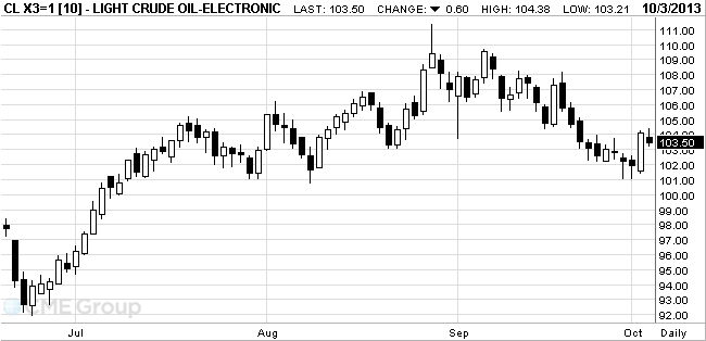 Стоимость ноябрьских фьючерсов на американскую легкую нефть марки WTI (Light Sweet Crude Oil) упала до $103,21 за баррель на Нью-Йоркской товарной бирже.