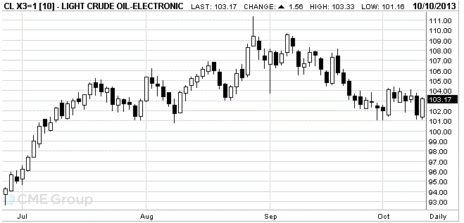 Стоимость ноябрьских фьючерсов на американскую легкую нефть марки WTI (Light Sweet Crude Oil) выросла до $103,17 за баррель на Нью-Йоркской товарной бирже.