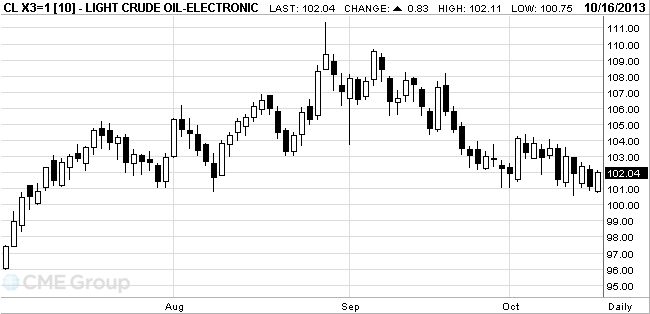 Стоимость ноябрьских фьючерсов на американскую легкую нефть марки WTI (Light Sweet Crude Oil) выросла до $102,48 за баррель на Нью-Йоркской товарной бирже.