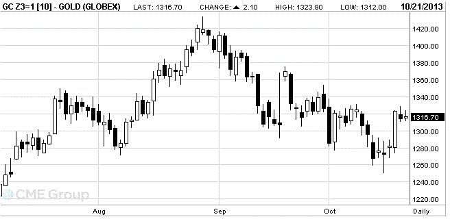 Стоимость декабрьского фьючерса на золото на COMEX сегодня выросла до $1316.70 за унцию.