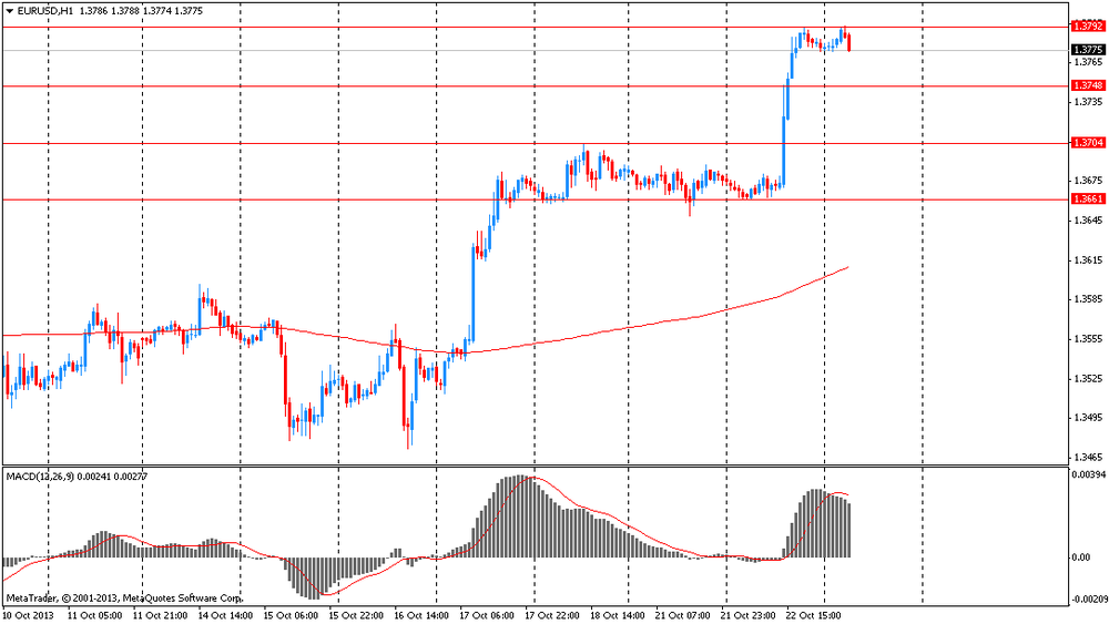 EUR/USD: в ходе азиатской сессии пара выросла к $1.3795