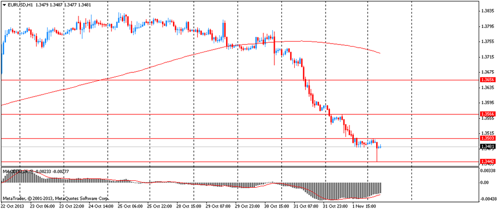 EUR/USD: в ходе азиатской сессии пара упала к $1.3440