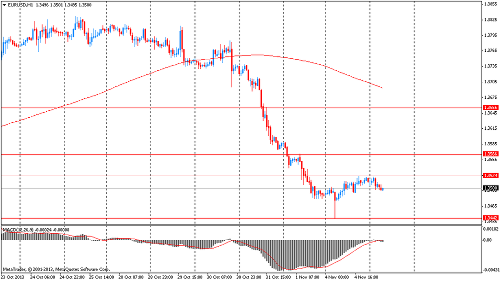 Евро снизился против иены в преддверии сегодняшнего выступления президента Европейского центрального банка Марио Драги. Инвесторам интересно будет услышать хоть какие-то намеки относительно ближайших планов ЕЦБ. Напомним, что уже на этой неделе, 7 ноября, состоится очередное заседание Европейского финансового регулятора. Большинство экономистов не ожидают от правления банка каких-либо изменений в монетарной политики. Однако эксперты из таких банков, как Bank of America Corp., UBS AG и Royal Bank of Scotland Group Plc прогнозируют сокращение процентной ставки регулятора. Дополнительно, сегодня в Брюсселе выступит с экономическими прогнозами комиссар Европейского Союза по экономическим и валютным вопросам Олли Рен.
