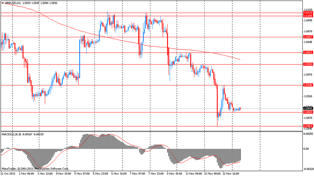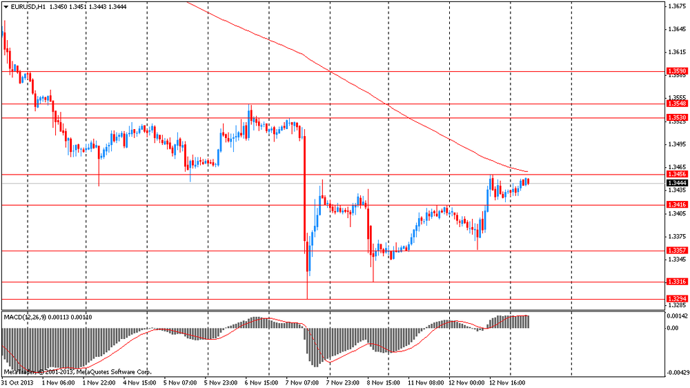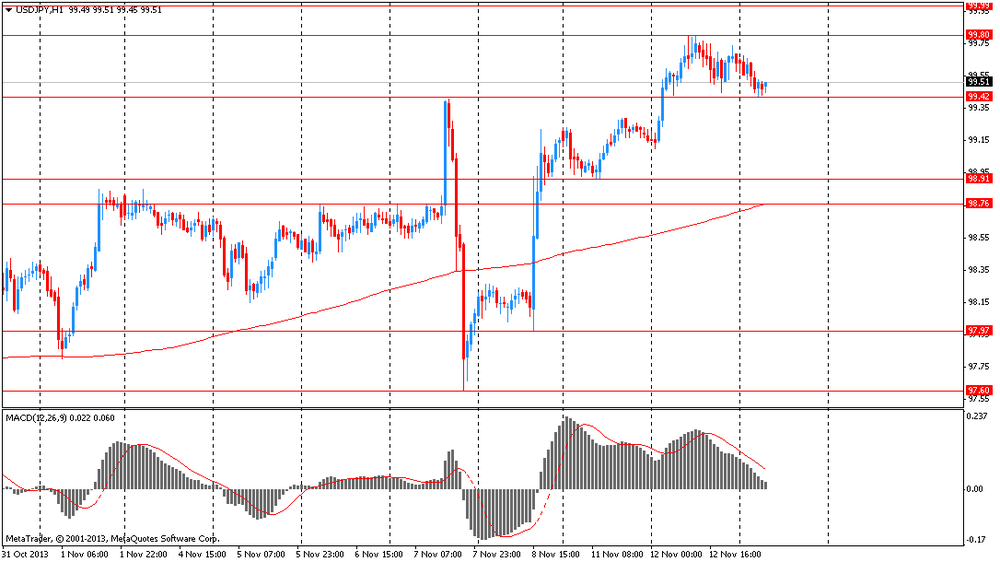 Иена торгуется около двухмесячного минимума, после сегодняшнего выступления члена правления Банка Японии Рюдзо Мияо. Банкир отметил, что Япония пока далека от достижения цели по инфляции в 2% и ЦБ уже в следующем году может расширить стимулирующие программы. Также сегодня в Японии были опубликованы правительственные данные по заказам на машины и оборудование, которые упали в сентябре на 2,1%.