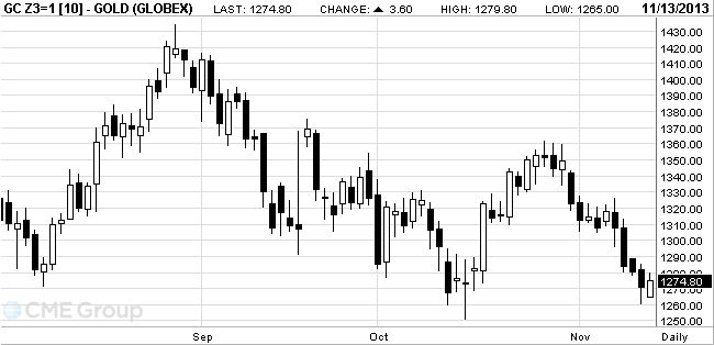 Стоимость декабрьского фьючерса на золото на COMEX сегодня выросла до $1279.80 за унцию.