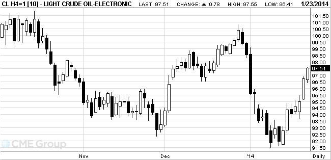 Стоимость мартовских фьючерсов на американскую легкую нефть марки WTI (Light Sweet Crude Oil) выросла до $97,79 за баррель на Нью-йоркской товарной бирже (NYMEX).